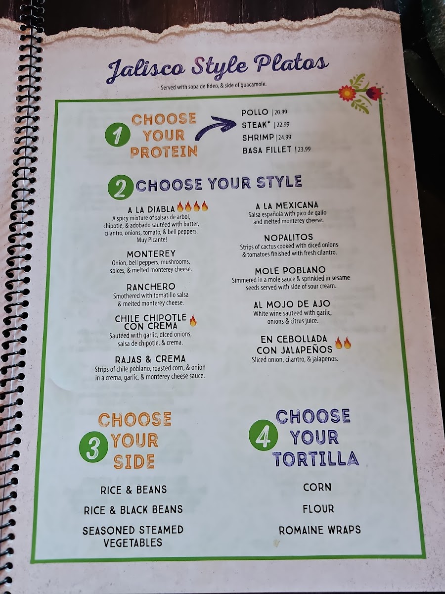 Choice of steak, carnitas or pollo asado with choice of chile chipotle, chile arbol or adobado sauce.